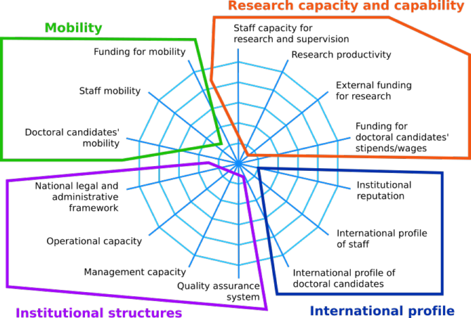 Following these principles, good practices in international doctoral education can be seen in four dimensions (See Figure 2): (1) International profile, (2) institutional structures, (3) research capacity and capability, and (4) mobility.