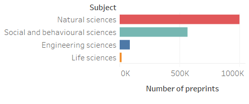 Figure 1. Number of manuscripts posted on preprint servers per discipline. (Source: Open Science Monitor of the European Commission)
