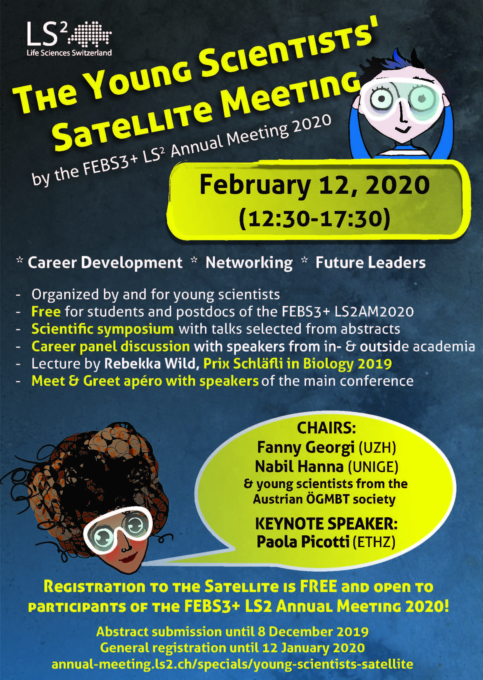 The Young Scientist's Satellite will promote networking among young, non-professorial scientists from Switzerland, Germany and Austria, as well as between them and internationally recognized scientists. Participants will get inspired by the lecture from the invited keynote speaker, Prof. Paola Picotti (ETHZ), who will share her scientific as well as personal experience during the development of her career. The satellite aims to encourage constructive interactions between people from various life science sectors and motivate young scientists in their career development by making them part of a panel discussion. This panel will include 4 speakers, who succeeded in their academic and non-academic careers, such as research group leaders, heads of scientific facilities, start-up creators, project managers, scientific writers and/or disseminators, etc. The discussion will guide, exchange ideas, and open new horizons to the young scientists.