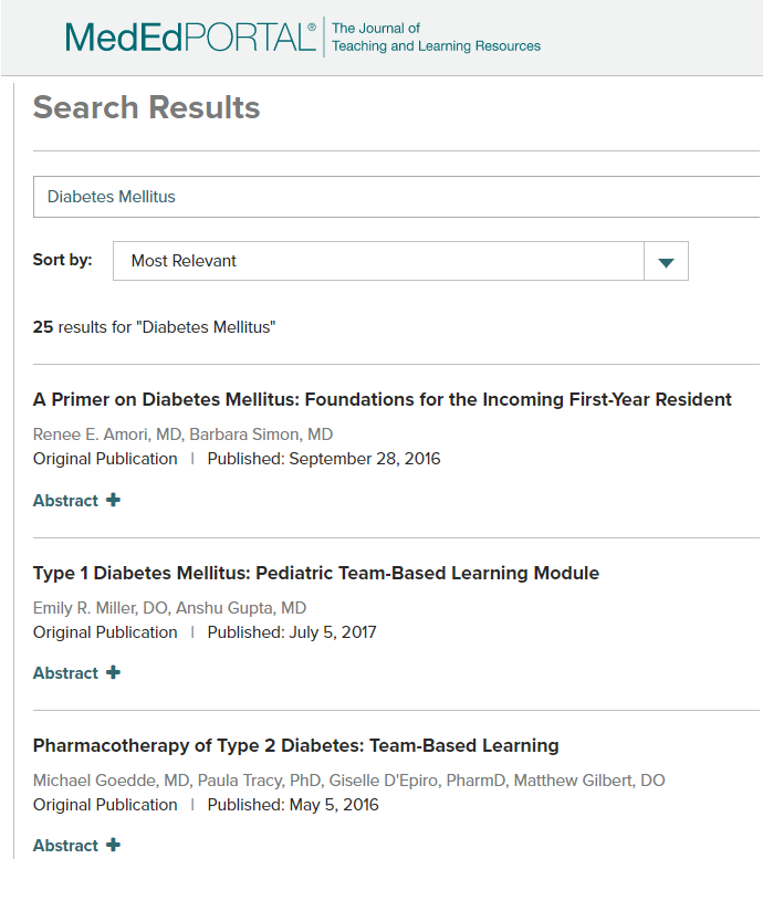 Our second stop is MedED PORTAL, a MEDLINE-indexed, peer-reviewed, open-access journal of teaching and learning resources in the health professions published by the Association of American Medical Colleges (AAMC). MedED PORTAL contains 16 volumes (from 2015 to 2020) and more than 2500 scientific articles. Unlike articles listed by MERLOT, all of these are education-related articles and published in MedED PORTAL itself after a review process.