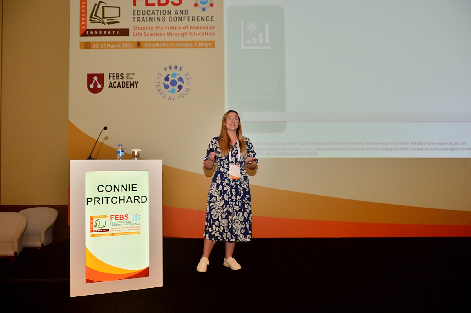 The FEBS Education Training Conference 2024 was my first experience of an international conference. I was fortunate to be awarded a grant to attend the conference from the FEBS Education Committee to help cover the cost of registration, accommodation and travel. I arrived in the beautiful region of Antalya, Türkiye with much anticipation, eagerness and good helping of nerves. My current role is an unusual one; I work as a part-time Teaching Associate and a part-time PhD student, both in the School of Biosciences at Cardiff University, UK, so I have a foot in both the academic and student worlds. Being a particularly ‘early’, early-career researcher, I was unsure how I would fit in with the exceptional researchers and educators attending the conference. However, I was welcomed (quite literally) with open arms by Ferhan Sagin and was immediately made to feel at ease.