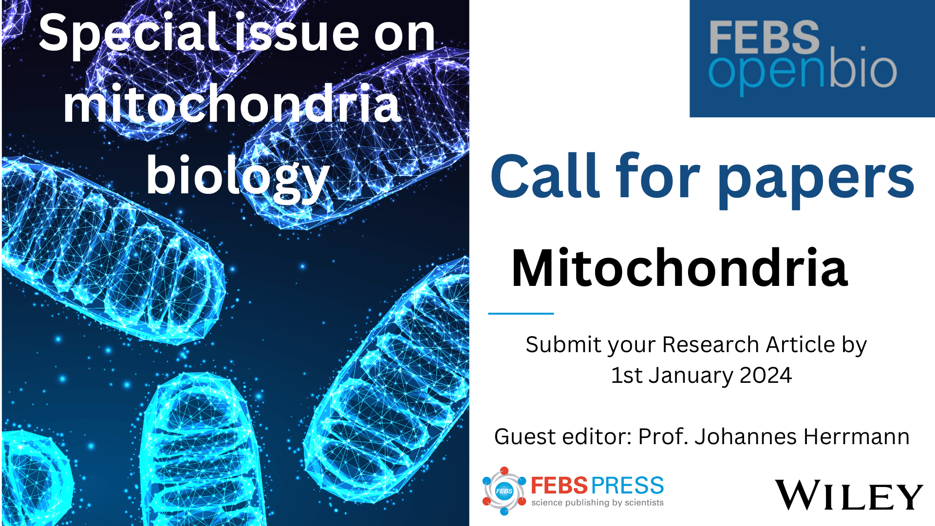 Guest Editor Johannes Herrmann (University of Kaiserslautern, Germany) and other experts in the field will be contributing Review articles on key advances, and we would like to invite the community to submit their latest original research on mitochondrial biology for consideration of inclusion in the issue. These issues are always well-read, and so this is an excellent opportunity to get your work in the spotlight while supporting a scientific society.