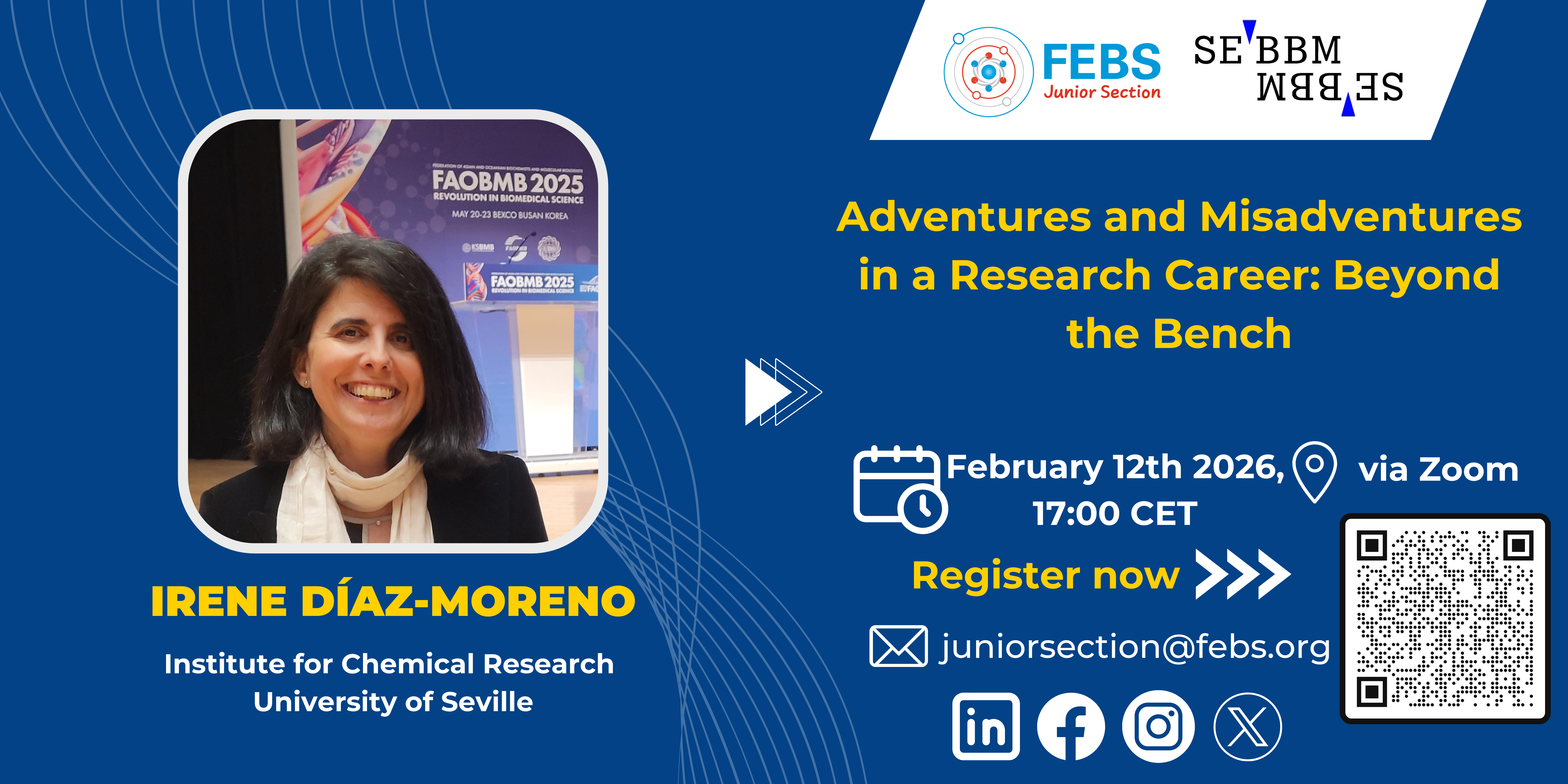 This talk is an activity from the FEBS Junior Section, an initiative set up by students and young researchers from some of the FEBS Constituent Societies. Each month members of the FEBS Junior Section organize an online event on either a research or a career topic. This talk was coordinated by the junior section of the Spanish Society of Biochemistry and Molecular Biology (SEBBM).