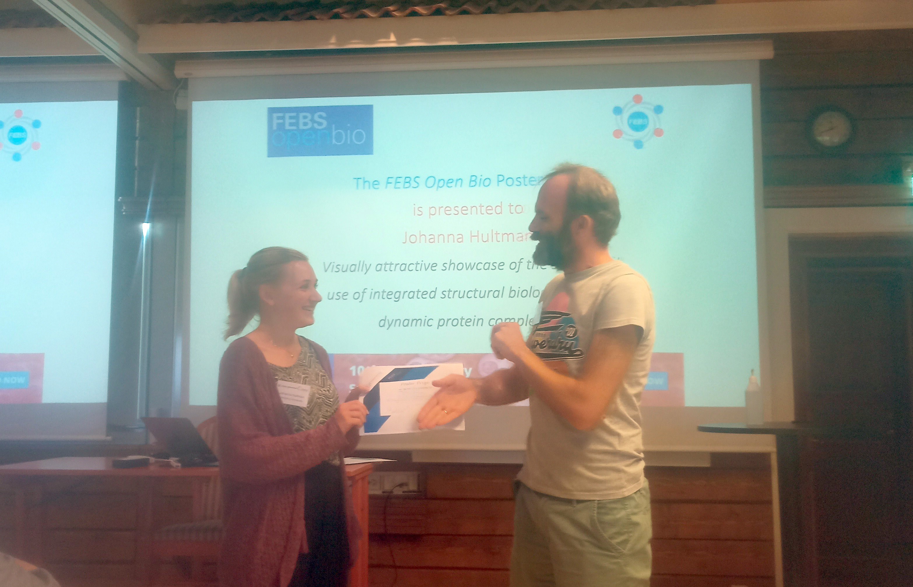 Winner of the FEBS Open Bio Poster Prize at the annual meeting of the Swedish Foundation for Biochemistry, Biophysics and Molecular Biology, Tällberg, Sweden
