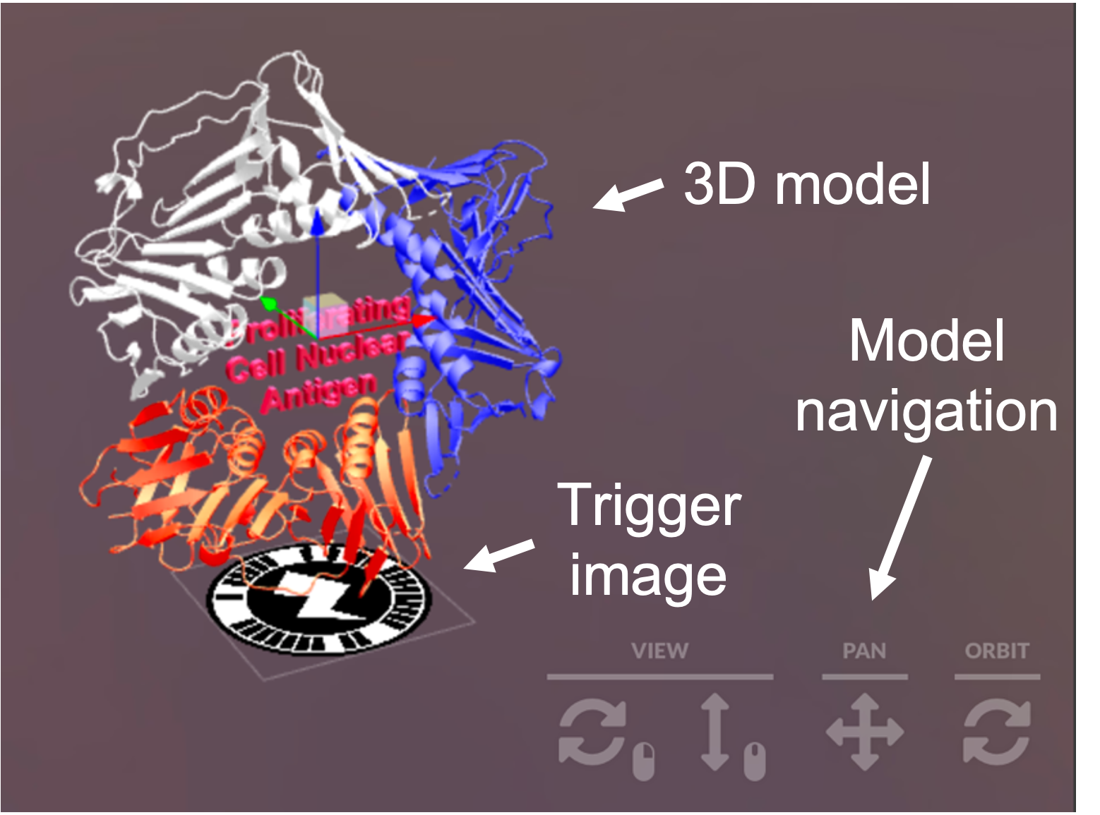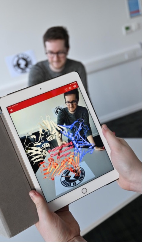 Our research to date has shown AR to be a highly engaging way of delivering bioscience content. An interesting facet to explore in future studies will be the ability to hide additional information in the models, either as part of the model (as done here) or by requiring the user to click on a section of the model that then reveals the in a pop-up box. Importantly, the flexibility and power of this technology has yet to be fully explored and it remains an exciting prospect to capture the dynamic changes in protein function while prompting greater collaboration between students.