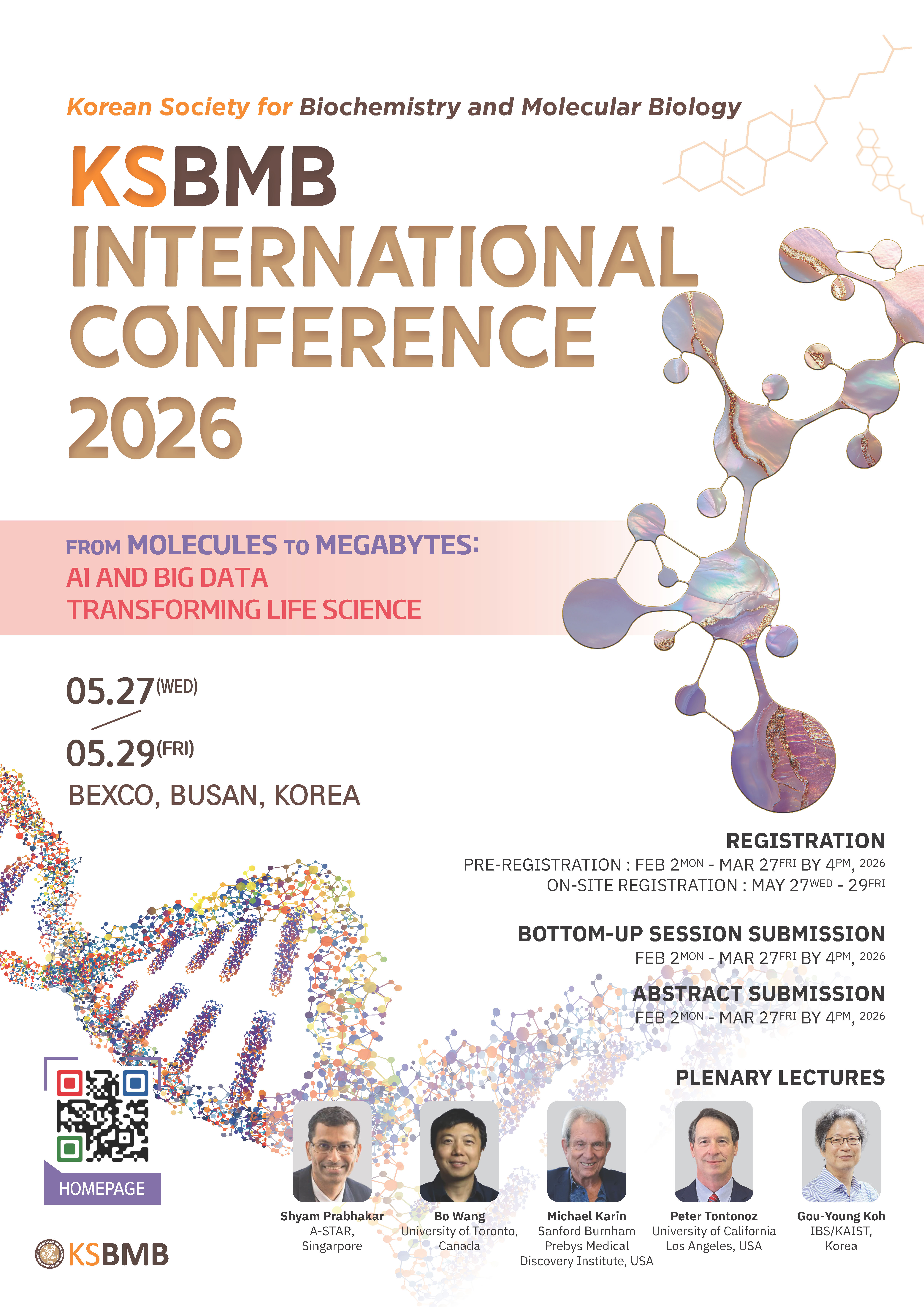 The Korean Society for Biochemistry and Molecular Biology (KSBMB) is hosting its International Conference 2026 under the theme "From Molecules to Megabytes: AI and Big Data Transforming Life Science". Abstract submission deadline is on 27 March.