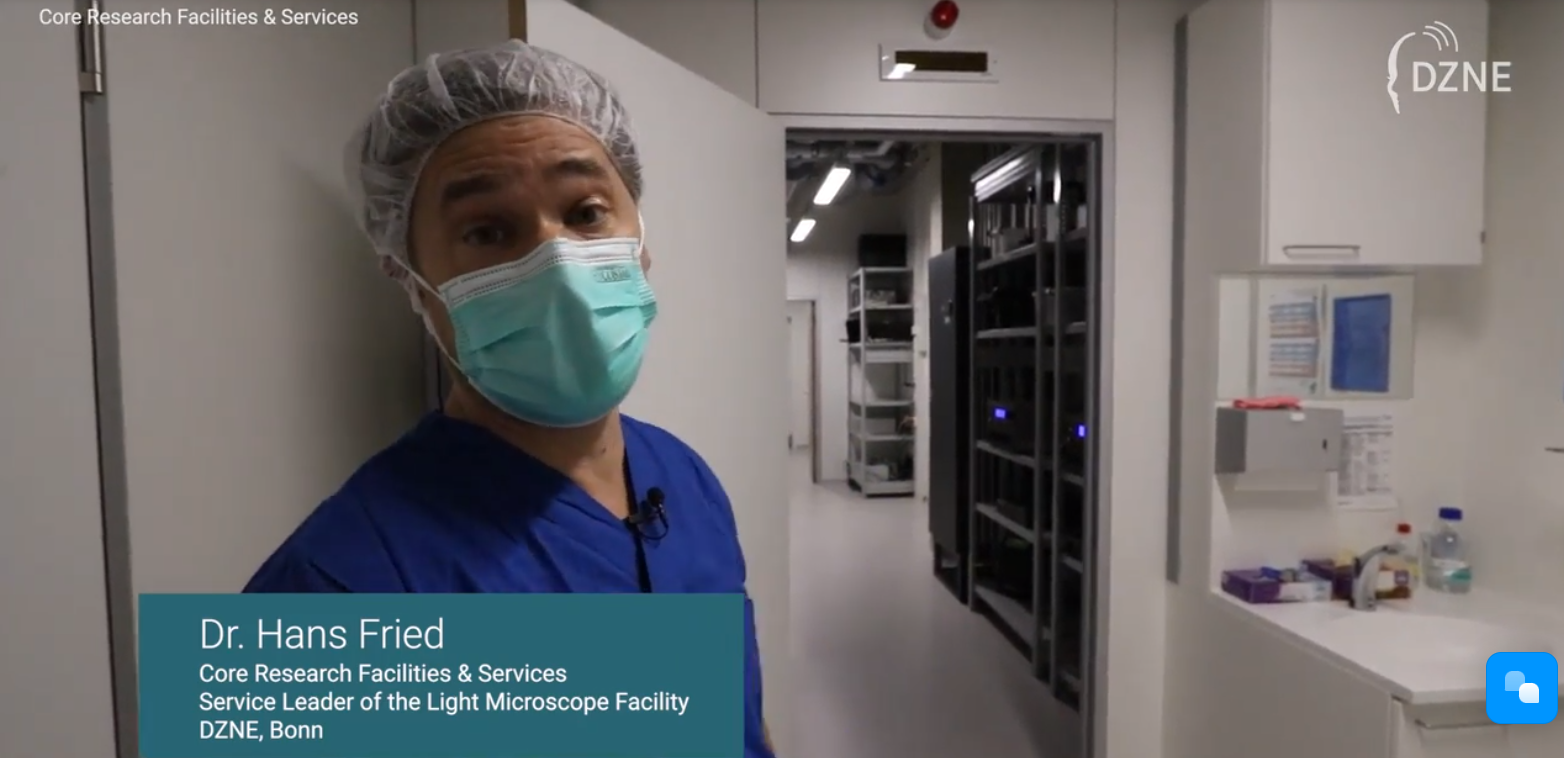 Watch a video of a short tour of the the light microscopy facility at the DZNE in Bonn.