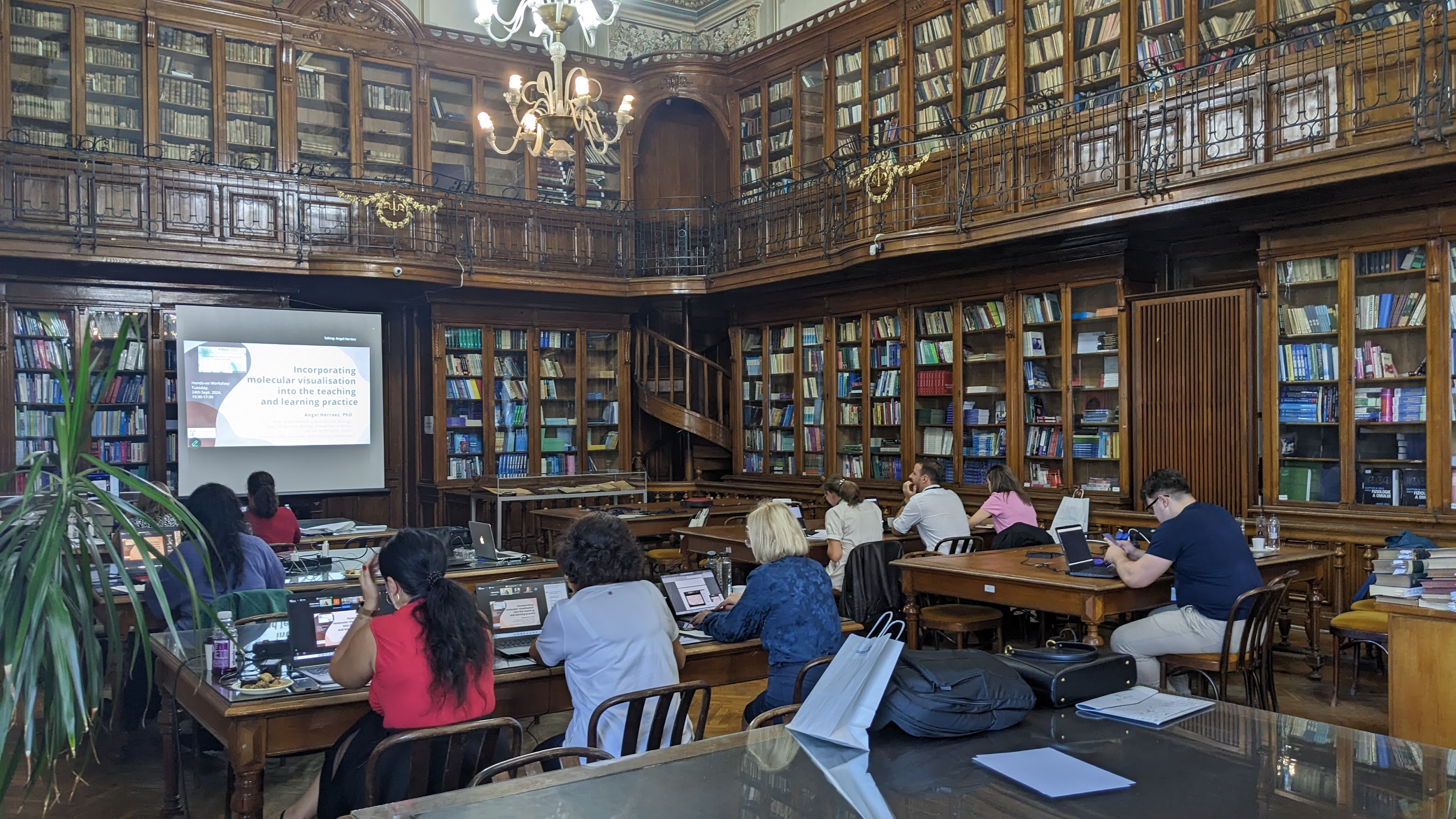 Organized as a satellite event preceding the Annual International Conference of the Romanian Society of Biochemistry and Molecular Biology, the hybrid event 'Promoting visual literacy in bio-molecular sciences education' took place in a very classical setting: the old Thoma Ionescu reading room, Carol Davila University, Bucharest.