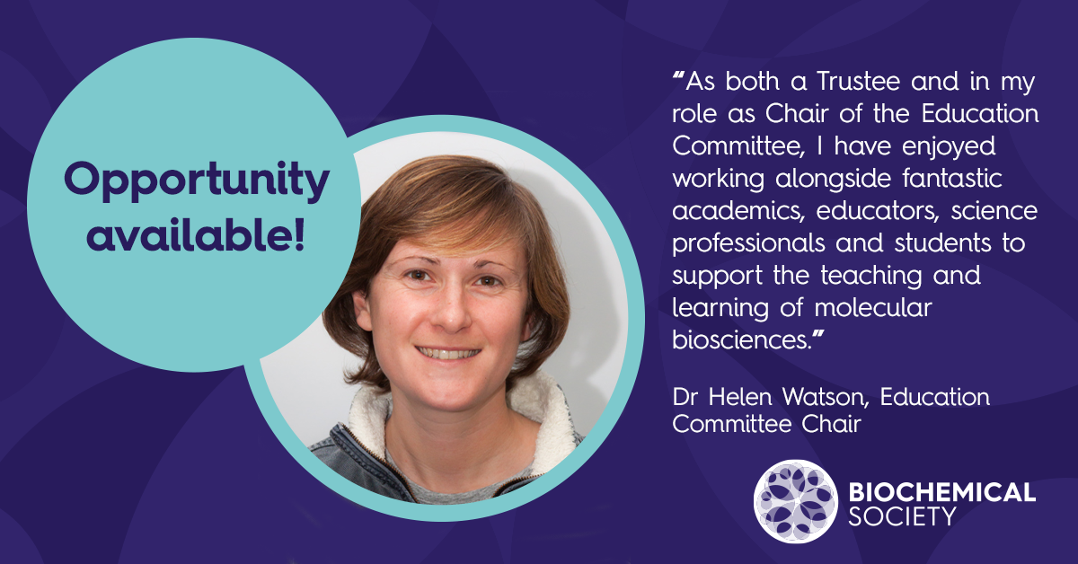 The Biochemical Society are looking for a Chair of the Education, Training and Public Engagement Committee.