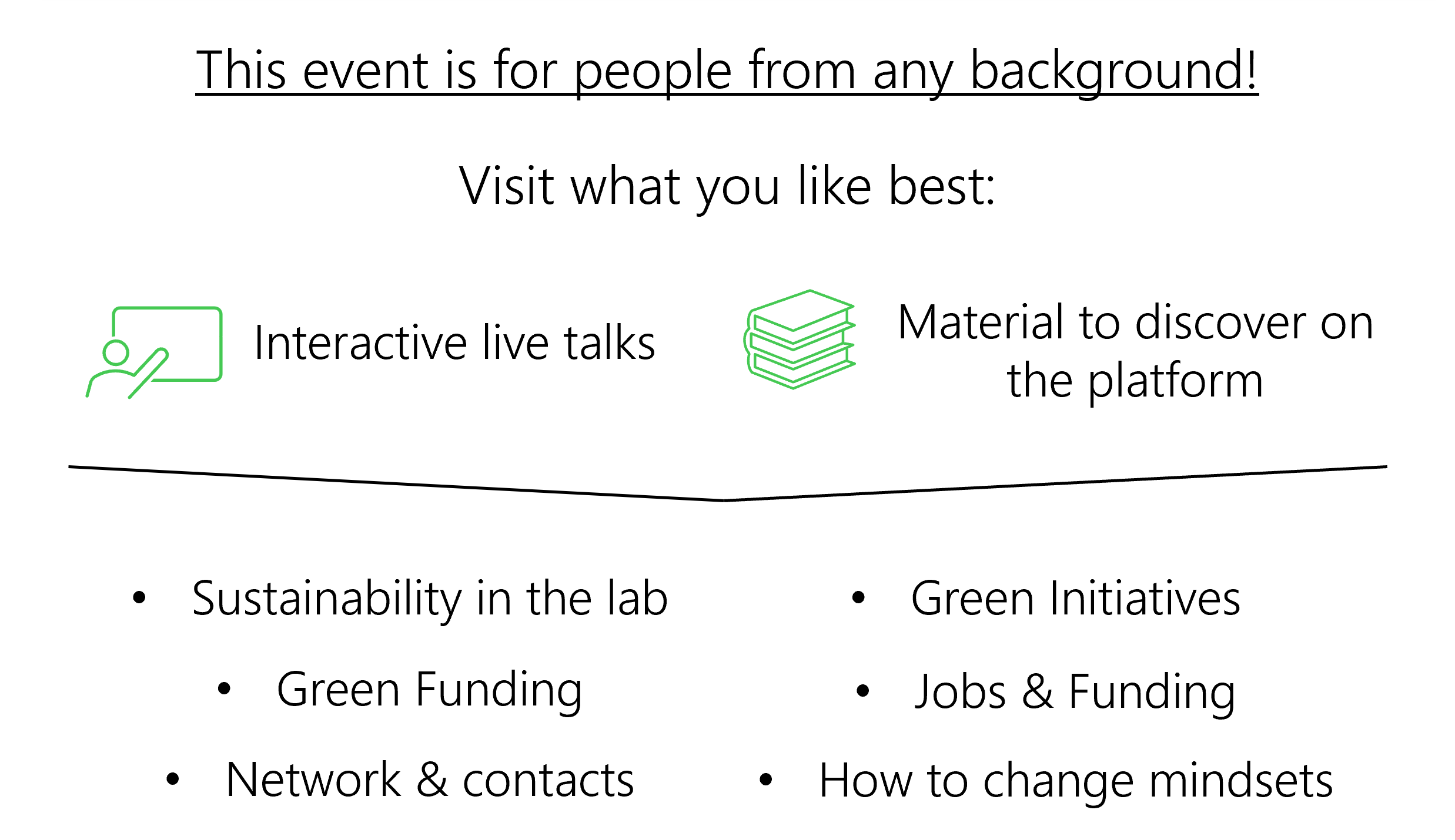 Attendees to the event can benefit by learning about sustainable lab practices, networking, and gaining access to educational resources and sustainable lab products. The event will feature talks by sustainability experts, downloadable material, and a whole lot of inspiration.