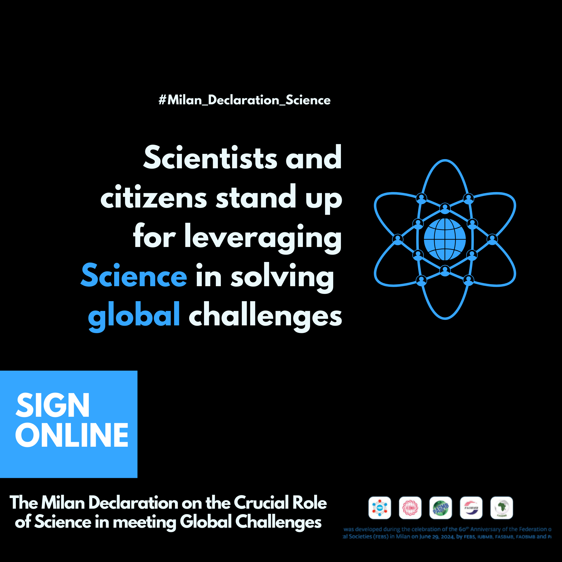 The Declaration was developed during the celebration of the 60th Anniversary of the Federation of European Biochemical Societies (FEBS) in Milan on June 29, 2024. To date, more than 1,400 individuals—including 55 Nobel Laureates—and 66 organizations have publicly endorsed it.
